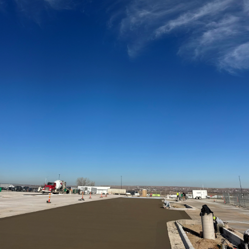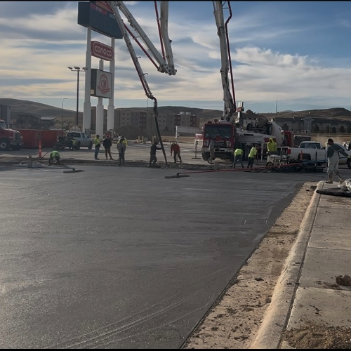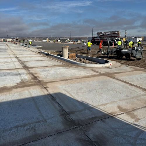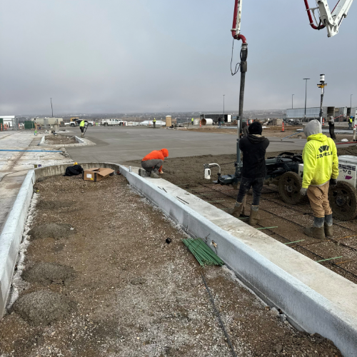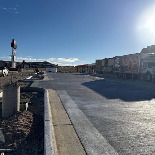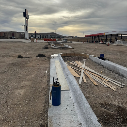On the Flying J gas station project, our crew has completed a significant amount of paving. The largest amount of paving completed in one day was 450 yards! Other site concrete was also completed, such as curb and gutter.